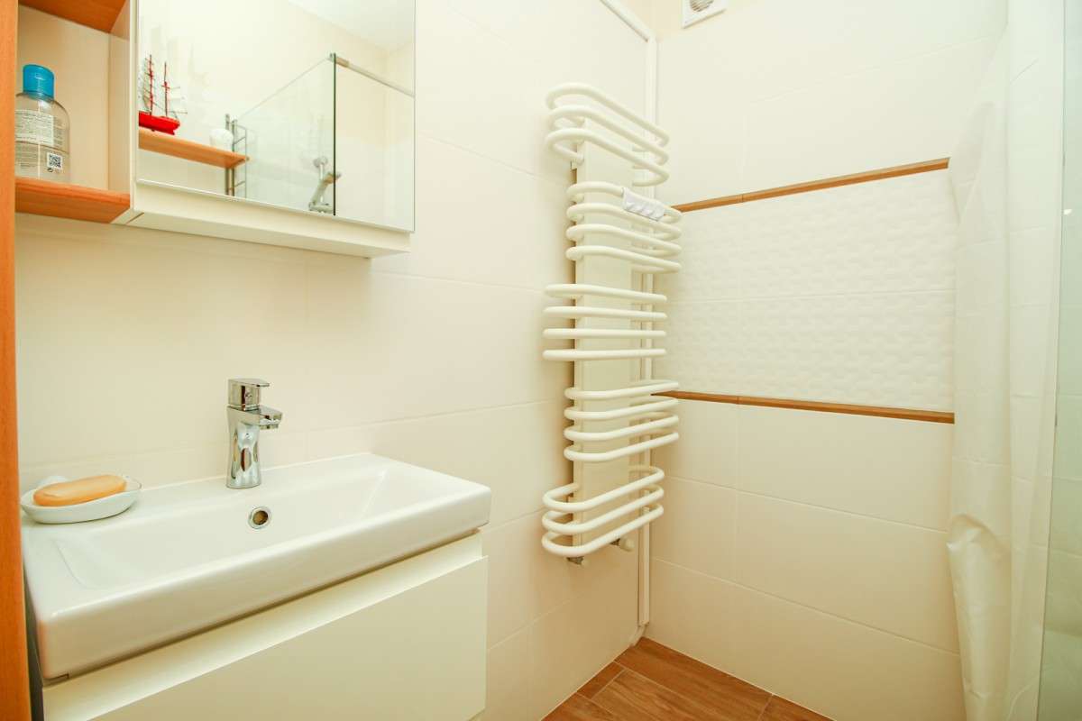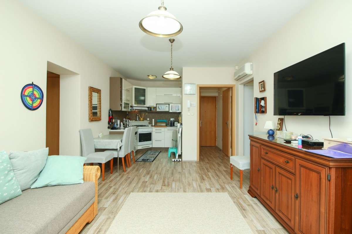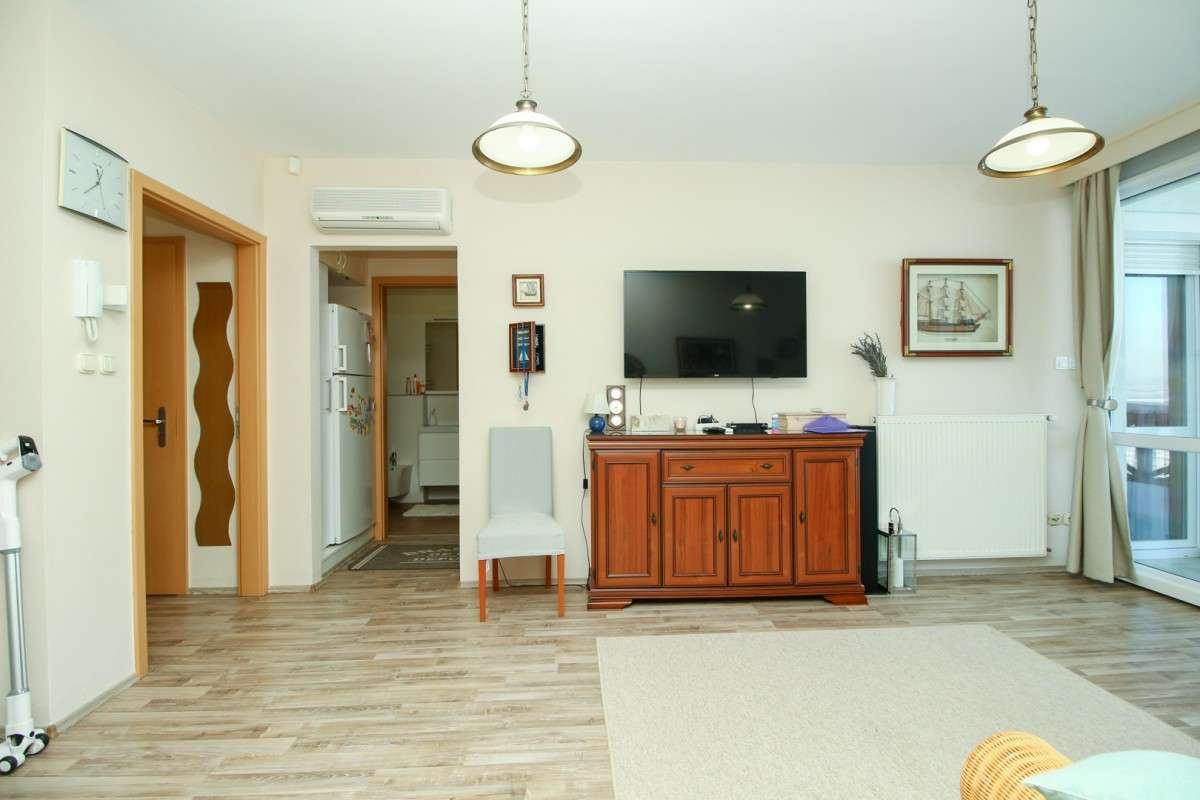 A kényelmes amerikai konyha nappaliban nagyméretű TV kábelcsatornákkal. A hálószobák igényesen vannak bútorozva, mindhárom franciaágyas, klimatizált, az egyik TV-vel berendezve Az apartman minőségi burkolatokkal, szúnyoghálóval, redőnnyel rendelkezik. A konyha teljesen felszerelt, mosogatógép, hűtő-fagyasztóval, sütő, főzőlap, kávéfőző, kenyérpirító, sütő, vízforraló, vízforraló, edények áll rendelkezésre.