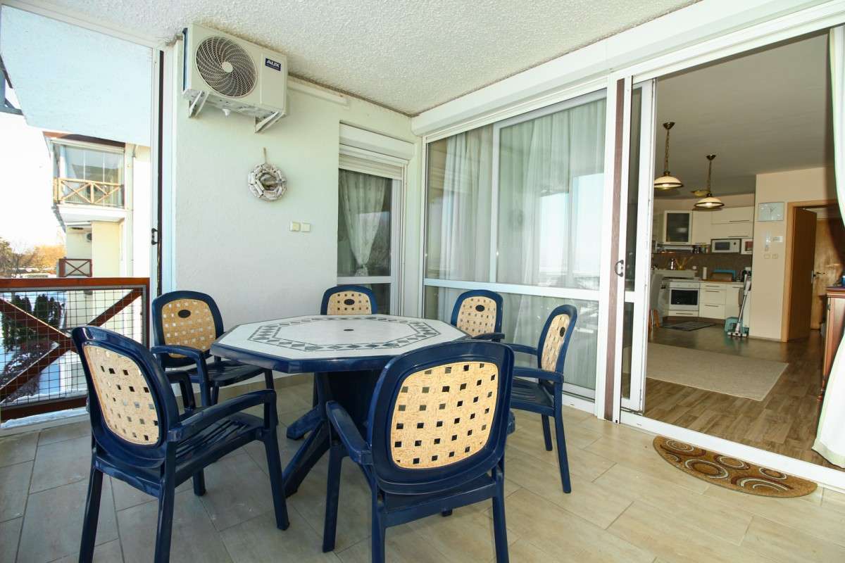 A szállás minden igényt maximálisan kielégítő, légkondicionált, panorámás, második emeleti, liftes új építésű apartman, hatalmas árnyékolt terasszal. A klímás apartman két hálószobájából és a nappaliból is tökéletes víz nyílik a Balatonra, Badacsonytól egészen a Tihanyi-félszigetig. Esténként a teraszról csodálhatjuk a balatoni naplementét. Az igényes balatonparti kiadó szállás lakótere 71 nm, fedett, bútorozott terasza 18 nm. A vízparti apartman 6 felnőtt részére kiadó. A 3 hálószobás, 2 teljesen felújított modern fürdőszobás vízparti apartman teraszáról a balatoni panorámában gyönyörködhetünk.